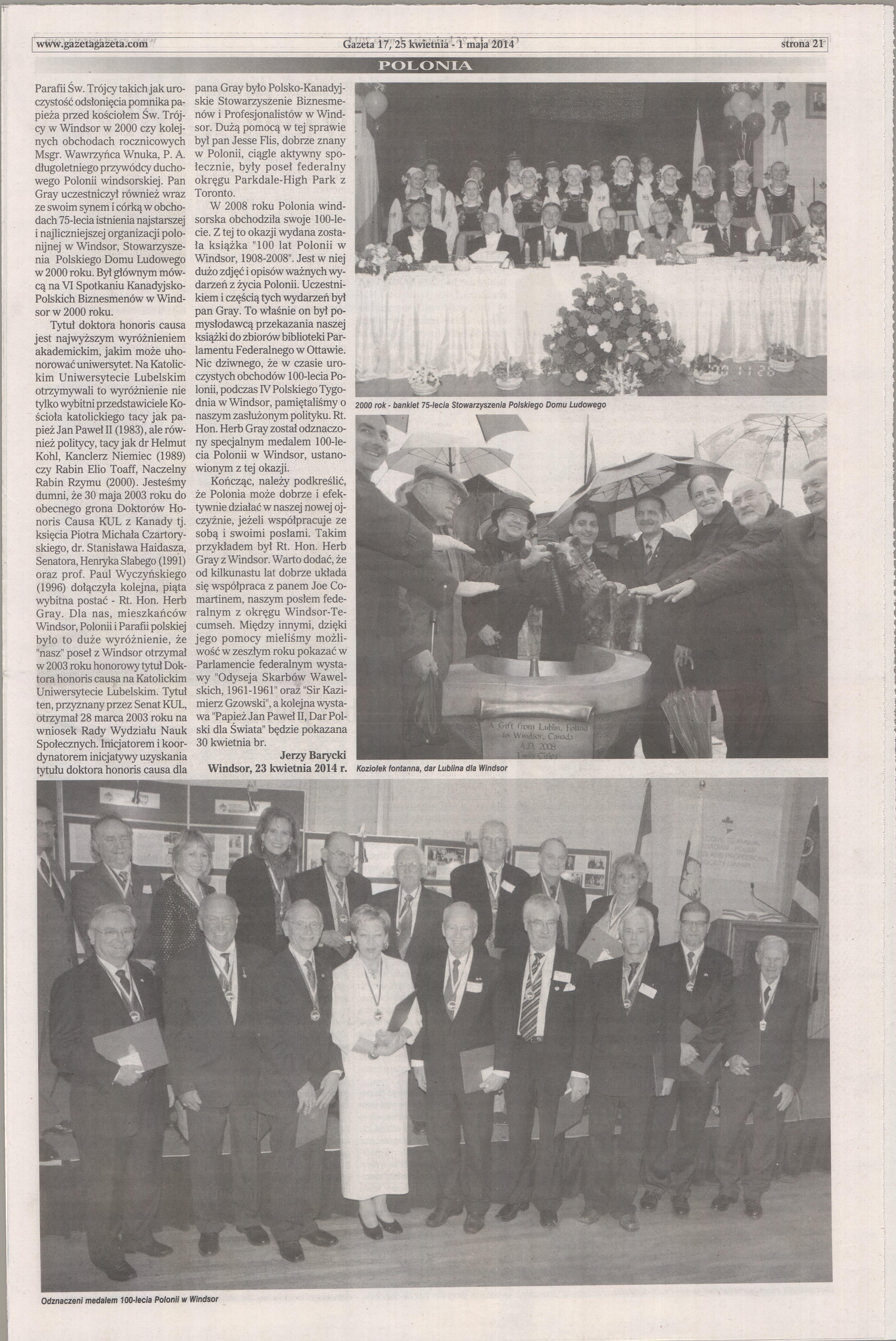 2014 H. Gray Legendarny polityk z Windsor Gazeta (P)-2